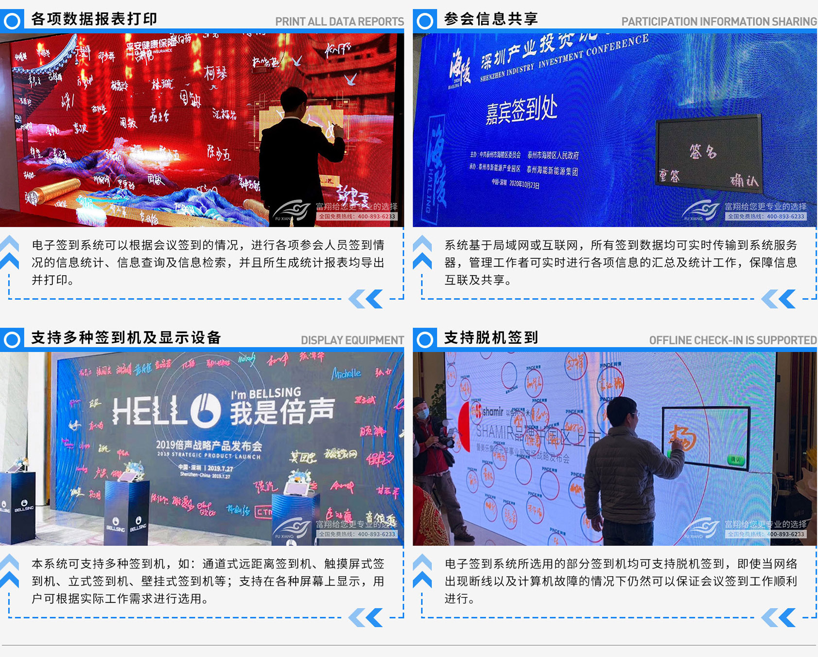 游客通过扫描二维码,,,,在手机上写下签名,,,,最终推送到大屏上,,大屏上显示游客们的签名,,,游客可以与众多签名互动,,,,让签到变得精彩趣味。。。