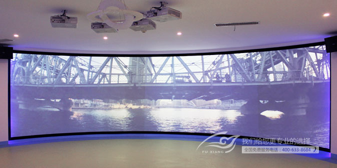 2. 4台工程投影机融合成10米*2.5米的弧型大画面;